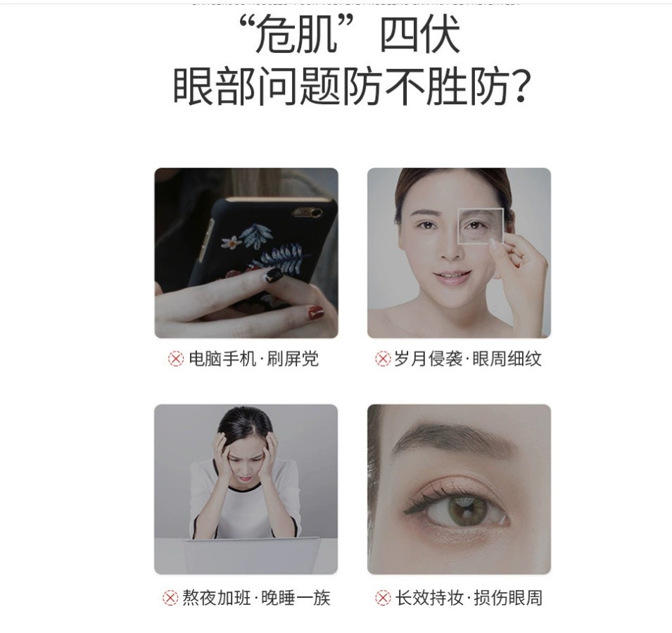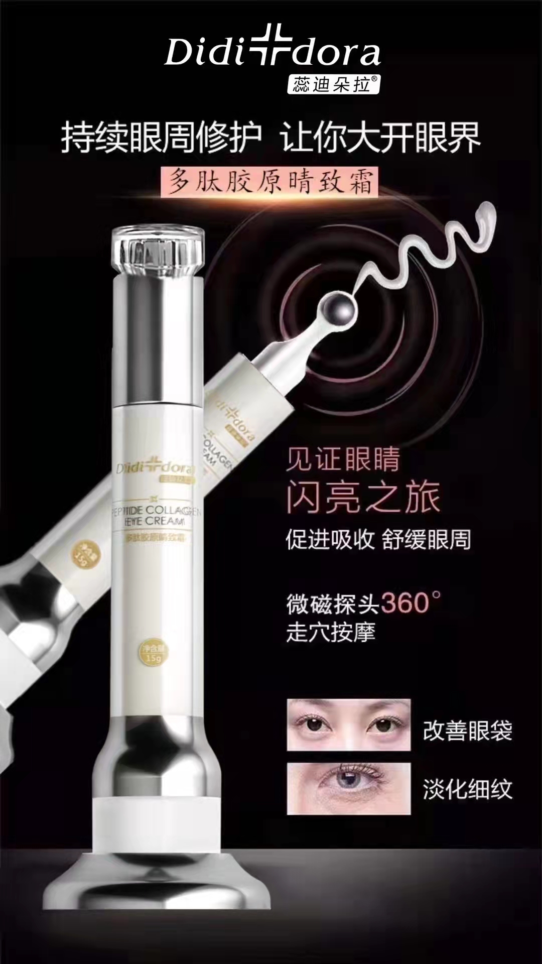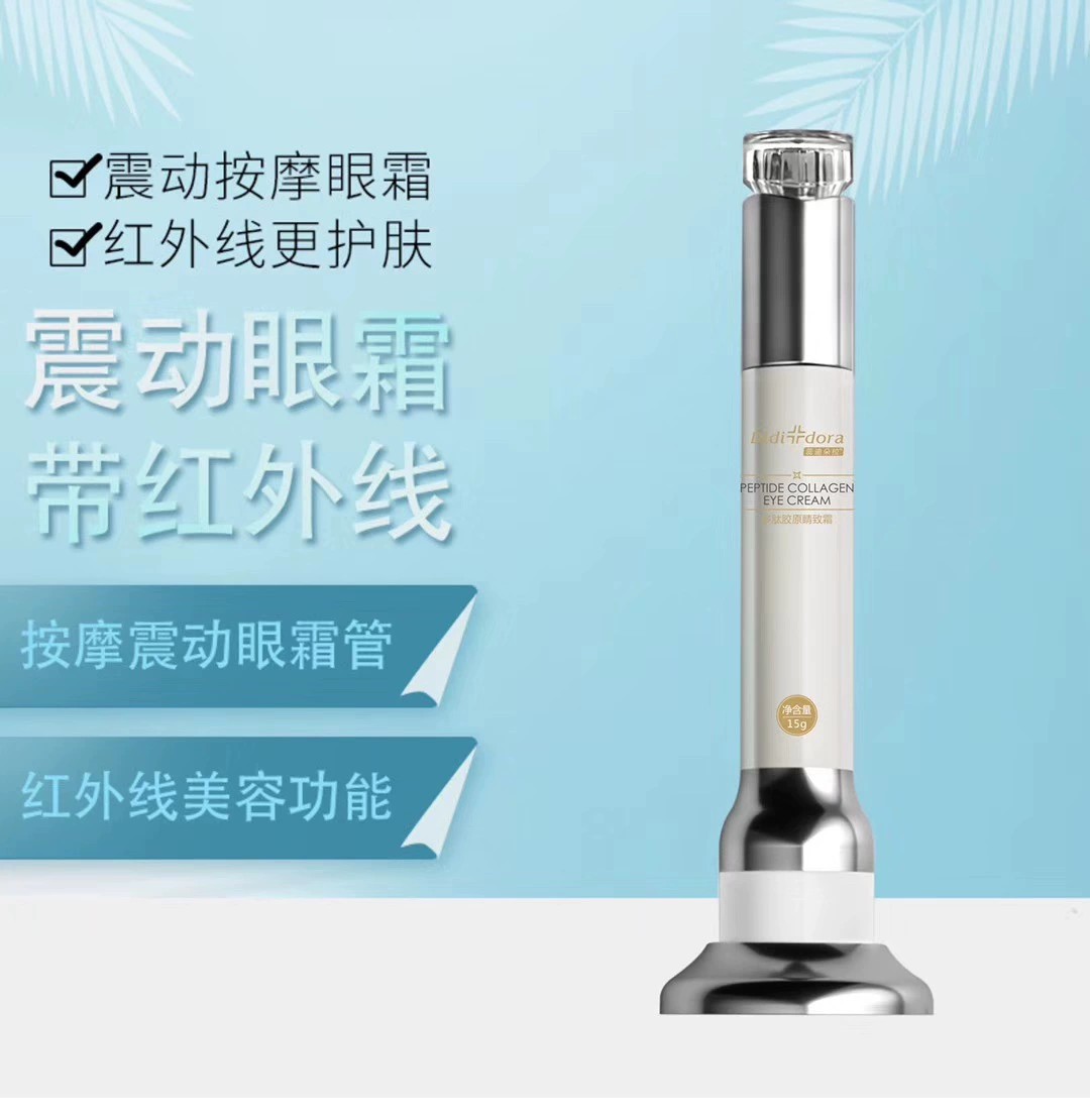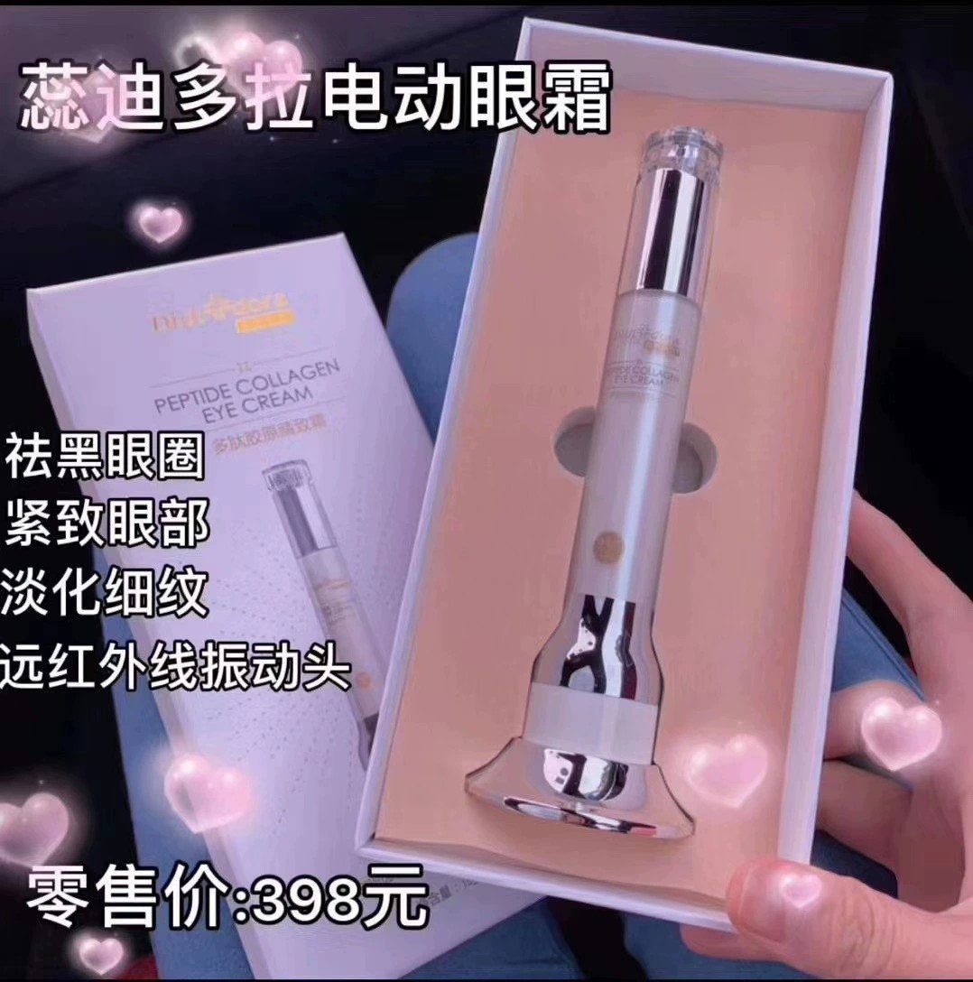 蕊迪朵拉電動眼霜介紹:賣點:滾珠式冰點設計,全方位按摩我們眼部穴位??梢愿梦覀冄鬯奈諠B透,通過眼霜按摩我們眼部可以促進血液循環,有效淡化黑眼圈,消除眼部水腫,緊致我們眼部肌膚的紋理。改善細紋,干紋,提前防止魚尾紋的生成。紅外線離子導入儀:萬次級高頻振,約數10萬次/分鐘高頻微振按摩加倍促進營養吸收,增強肌膚彈性,深層修復強韌肌膚??梢杂行崂畚?,(淚溝和眼袋)肌膚,也可提拉臉部肌膚和精華導入。